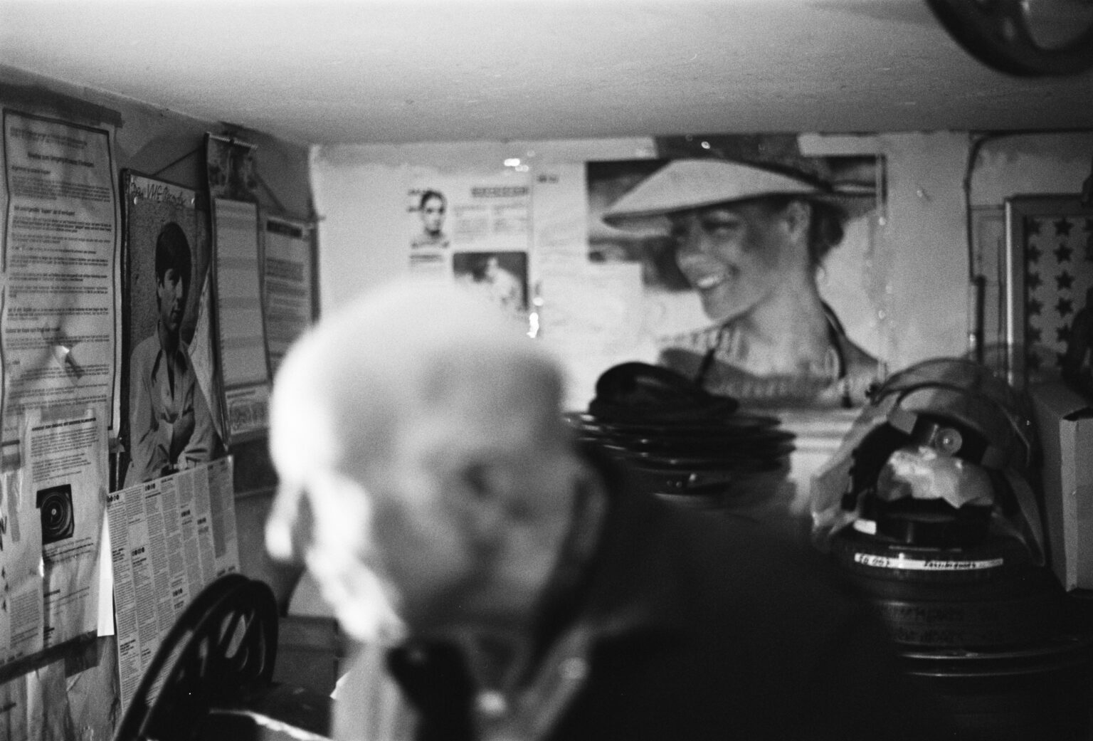 Nach der Vorstellung ließ André seine Connections spielen und ermöglichte mir einen ganz besonderen Einblick: Ich durfte mit ein paar anderen in den Vorführraum zu Dietmar. Dieser war gerade dabei den letzten Film zurückzuspulen. Mit seinen 84 Jahren zählt er zu der alten Schule. Er hat schon in verschiedenen Kinos in Köln vorgeführt. Leider bleiben die Magier am Projektor meistens im Dunkeln und niemand nimmt sie war. Schade eigentlich. Denn dieses Handwerk ist leider vom aussterben bedroht. Das liegt natürlich zum Einen an der fortschreitenden Digitalisierung der Kinos aber nicht zuletzt auch an den Understatement Persönlichkeiten, die solche Jobs ausüben. Genau so einer ist Dietmar. Er wirkt wie Batman in seiner Bat Höhle: Ein Superheld im Verborgenen.